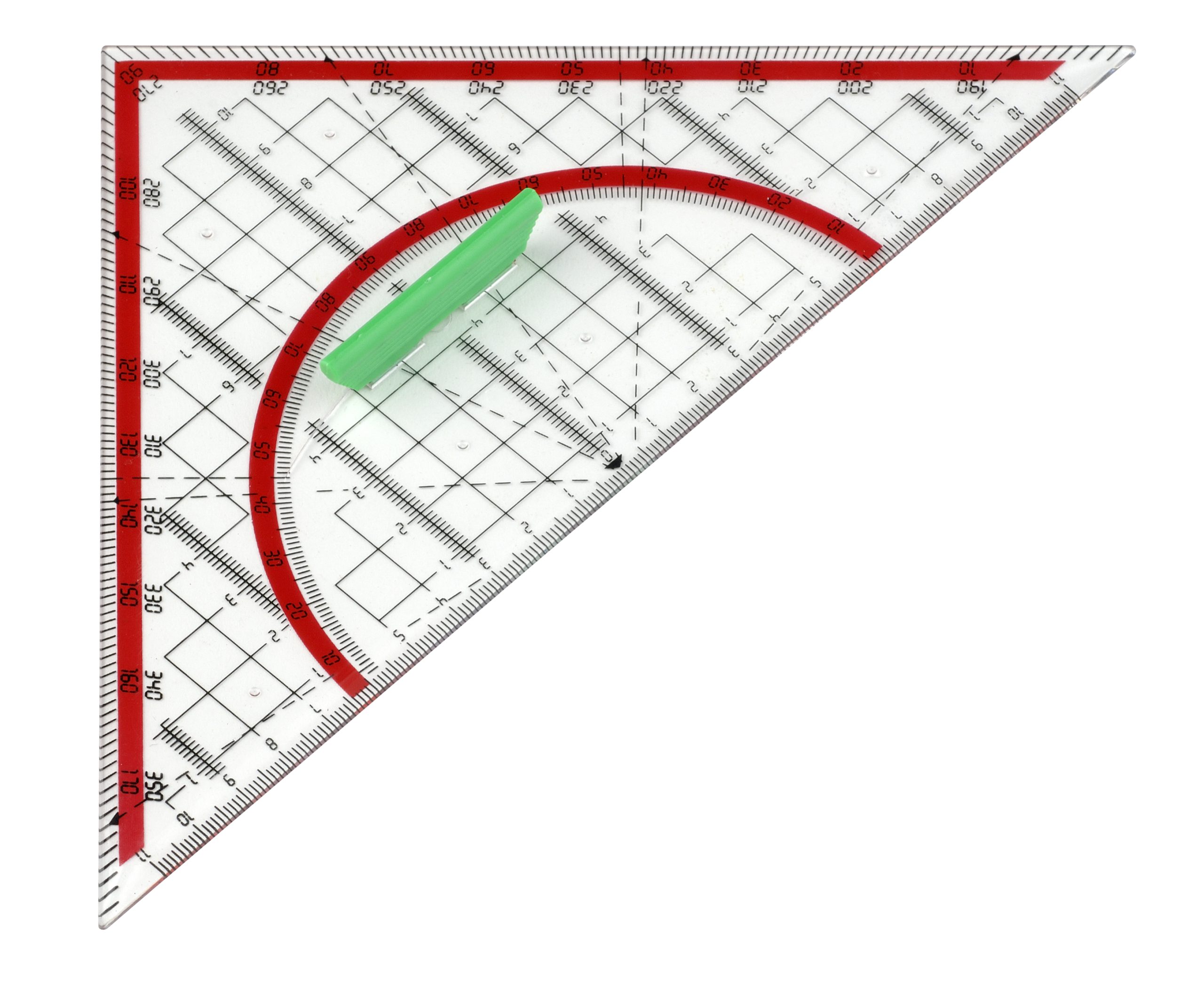 Equerre rapporteur 17 cm de cote equerre-rapporteur 180°/24cm plast/ls Echelle opposée 180° 1° – LS Traits à 45° et 135° Graduation en mm pour tracer des parallèles Poignée détachable Taille : base 24 cm