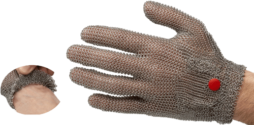 inox intégré : la cotte de maille devient extensible, il permet d’ajuster en permanence la maille sur la main